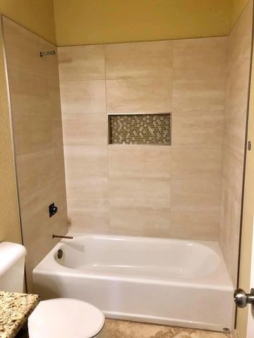 Tub/Showers start at a base price of $5,400 and include a niche, labor and materials. Extra niches start at $500. Windows start at $500 and benches start at $500. TILE PURCHASED BY HOMEOWNER.